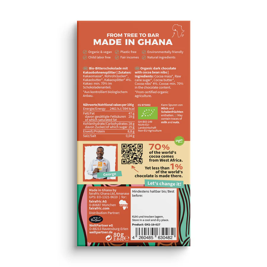 Kakao Nibs Zartbitter-Schokolade (70%)
