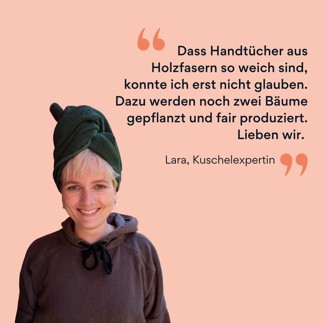 Für alle, die weder in der Qualität, noch in Sachen Nachhaltigkeit Kompromisse machen wollen: Kushel bietet das erste klimapositive Handtuch der Welt an – produziert aus Holz! Kuschelig-weiche Fasern streicheln deine Haut trocken, während du guten Gewissens deine Seele baumeln lassen kannst.