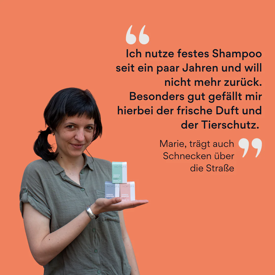 Ein Shampoo Bar (95g) hält ca. doppelt so lange wie flüssiges Shampoo aus der Plastikflasche.