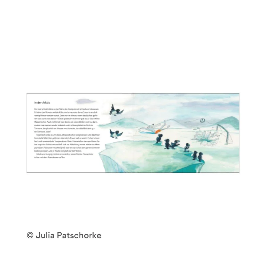 Als Mama Eisbär ihm erklärt, dass es immer später kalt wird, weil die Lebewesen auf der ganzen Welt zu viel warme Luft machen, beschließt der kleine Eisbär, den anderen Tieren Briefe zu schreiben. Vielleicht wissen sie ja gar nichts davon?